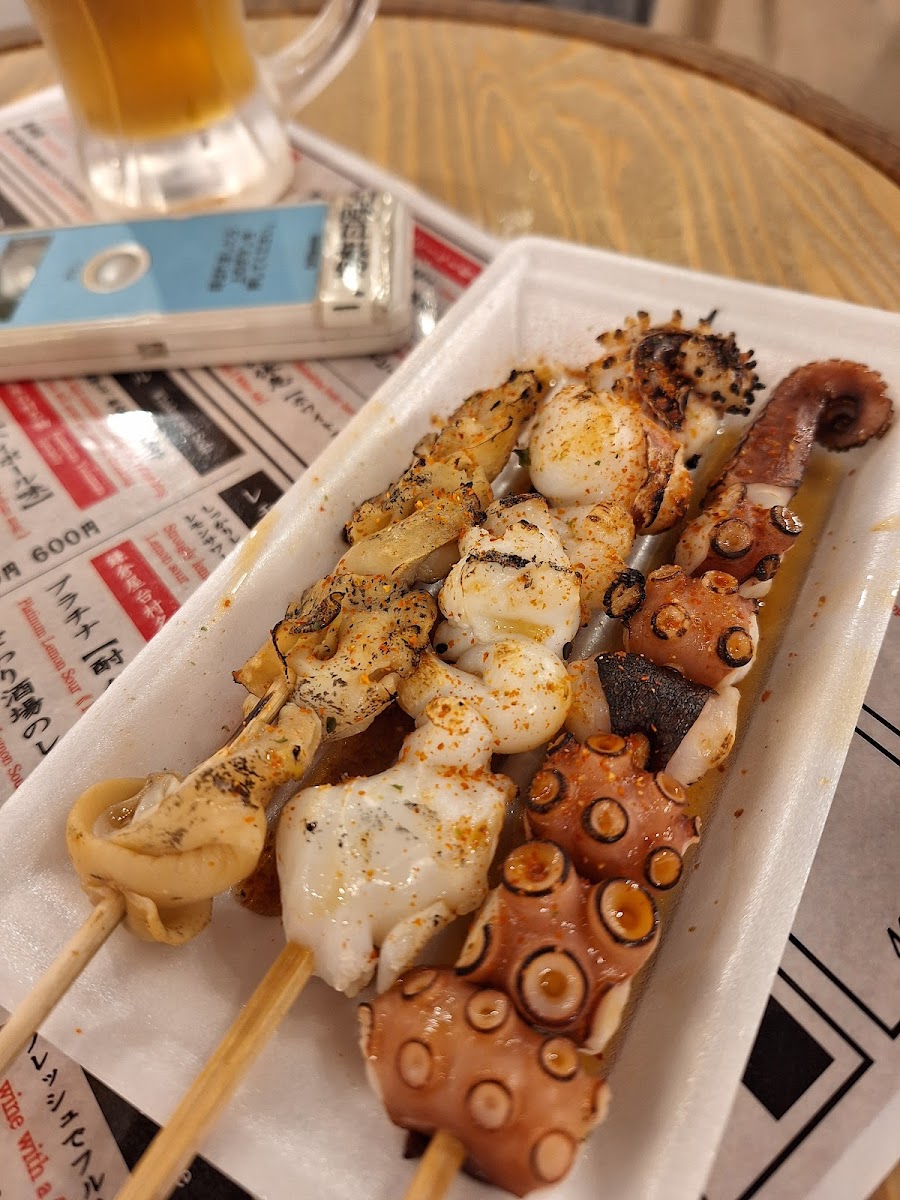 The restaurant's menu is packed with an array of delicious options, including some must-try dishes that keep customers coming back. One standout offering is the 生しらす丼 (shirasu don), a rice bowl topped with fresh, raw baby sardines. This dish highlights the region's coastal flavors and is a favorite among seafood lovers. If you're in the mood for something more skewered, Kamakura Yatai Mura also serves ツブ串 (turbo shell skewers), ゲソ串 (squid tentacle skewers), and タコ串 (octopus skewers), which are grilled to perfection and offer a unique taste of the sea.